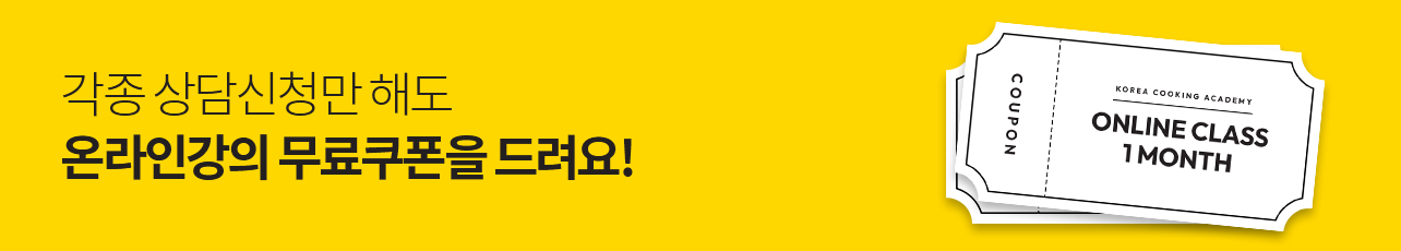 코리아요리아카데미는 상담 품질 개선을 위해 유선 상담 시 녹취를 실시할 수 있으며, 상담직원이 고객과의 통화를 직접 녹음하는 경우, 사전 고지 없이 녹음할 수 있습니다. 녹취파일은 1년간 보관 후 파기합니다. 외부 제공은 원칙적으로 금지합니다.